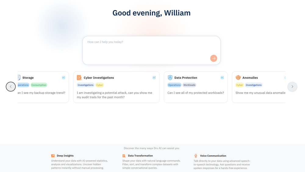 设计 自推出以来,DruAI 已成为组织管理数据安全和网络弹性的核心组成部分。在过去的一年里,超过 3,000 名客户和 10,000 名用户依靠 DruAI 来帮助调查和修复问题,在恢复、配置和支持工作流程中参与了超过 11,000 次 AI 驱动的对话。