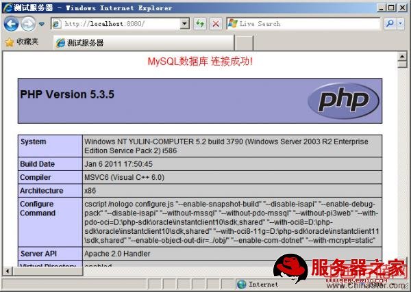 3. PHP我们选择用Windows的.zip版本,php-5.3.5-Win32-VC6-x86.zip。从安全性和性能来说,都是zip版本的好,一般服务器也都是安装这个版本的。