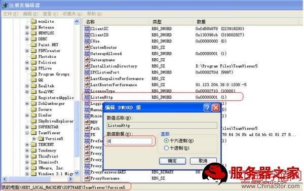 需要关闭TeamViewer的http侦听80端口:将ListenHttp数值改为0 GatewayAllowed数值改为0