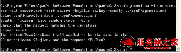openssl ca -in server.csr -out server.crt -cert ca.crt -keyfile ca.key -config ..confopenssl.cnf