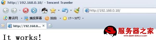 在成功开启apache服务后,在系统托盘处的图标变成绿色箭头,如图所示。在浏览器中输入自己的IP地址进行测试,当浏览器中出现It Works!时,表示apache良好,可以配置apache了。