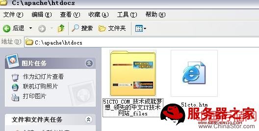 ·找到apache下htdocs目录,此目录是存放WEB站点首页的地方。将目录中所有项目删除,并放入自己的网页文件。