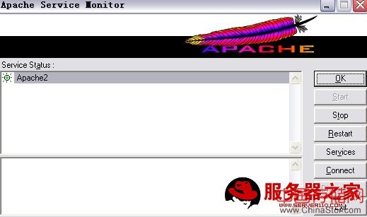 ·打开apache监视器后点击“Restart”按钮,重启apache服务。