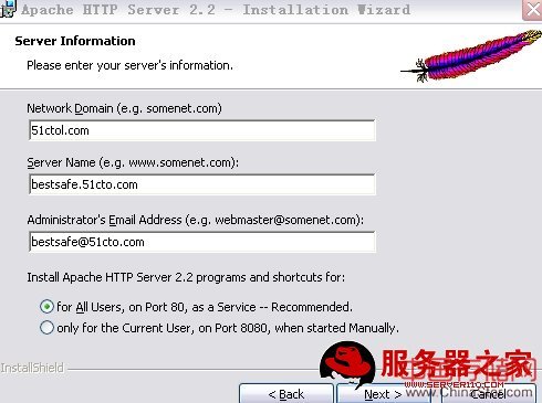 ·首先打开安装文件apache_2.2.4-win32-x86-no_ssl.msi,按照一下步骤开始安装。