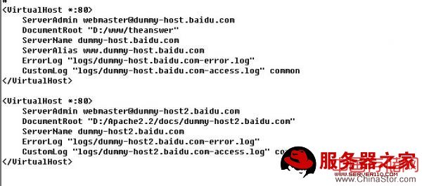 ServerAlias www.dummy-host.baidu.com 如果你有多个域名就可以在这里改下
