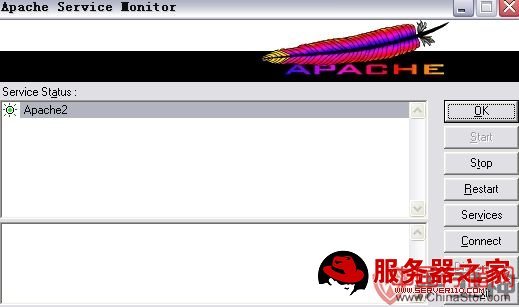 打开apache监视器后点击“Restart”按钮,重启apache服务。