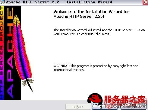 首先打开安装文件apache_2.2.4-win32-x86-no_ssl.msi,按照一下步骤开始安装。