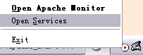 完成apache的安装后会在系统托盘处出现如下图标,此时右击该图标选择Open Services开起apache服务
