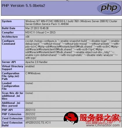 这里PHP5.5.0用php5apache2_4.dll来配置的。也不用PHP.ini文件了,用PHP默认的了。