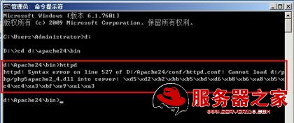 第37行ServerRoot "c:/Apache24"改为ServerRoot “D:/Apache24”;//Apache程序的位置。