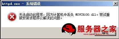 注1:如果Apache2.4.4没有安装VC10库,会出现如下提示的错误。