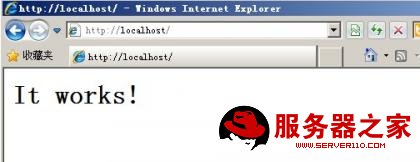 如果httpd.conf配置正确的话,输入httpd回车后是没有任何提示的。不要关闭命令窗口(关闭命令窗口就是关闭Apache),本地浏览器访问。出现“It works”那么就说明apache已经正确安装了。