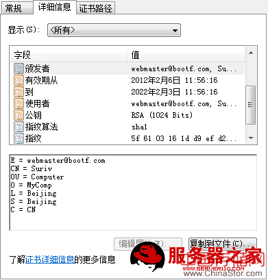 上面生成的证书有效期为10年(呵呵太长了点,一般三年就行了)
