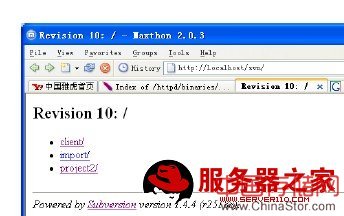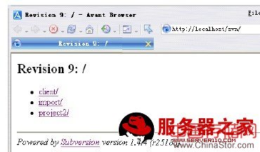 OK,我们看到我们现在已经成功的通过浏览器访问SVN仓库中的内容了。注意:在进行SVN与Apache整合时,一定要注意两者的版本匹配问题,否则将会导致失败。