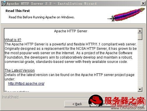 2. 开始安装 双击httpd-2.2.21-win32-x86-no_ssl.msi开始安装。出现安装欢迎界面。