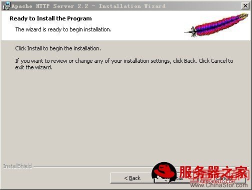 确认安装选项无误,点“Install”开始安装。如果您认为要再检查一遍,可以点“Back”一步步返回检查。