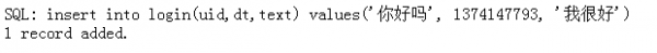 $conn = mysql_connect($host,$user,$passwd); die('Could not connect: ' . mysql_error()); mysql_select_db($db, $conn); $insert_sql = "insert into login(uid,dt,text) values('$_POST[uid]', $dt, '$_POST[text]')"; echo "SQL: ".$insert_sql."<br >"; if (!mysql_query($insert_sql, $conn)) { die('Error: ' . mysql_error()); echo "1 record added.<br >";