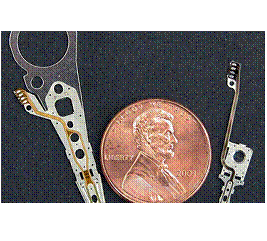 日立Microdrive,其直径已经从1英寸缩小至0.85英寸。不过目前已经没有厂商宣布还将进一步缩小盘片尺寸了,相反,各大厂商都在努力提高硬盘的稳定性并且提升其单位空间的密度,比如垂直记录技术等,使得硬盘的容量在现在基础之上可以在提升20-30倍。