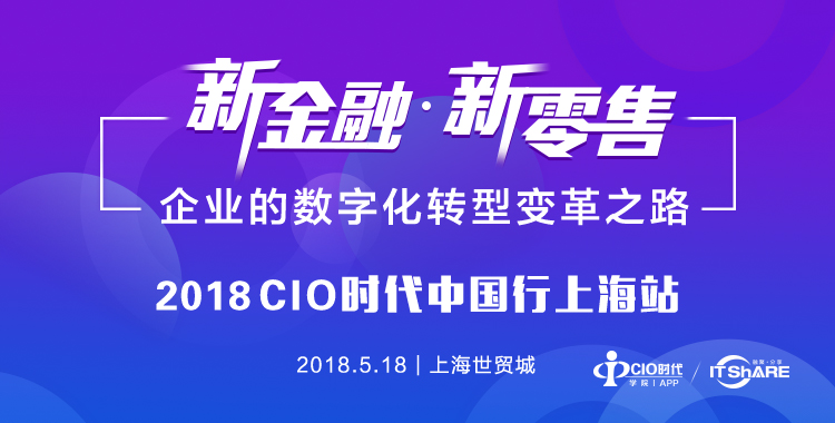 2018年5月18日,由中国新一代IT产业推进联盟指导,CIO时代学院和ITShare联合主办,CIO时代APP承办的“2018CIO时代中国行-上海站”将以“新金融·新零售--企业的数字化转型变革之路”为主题,共同探讨新金融、新零售的未来。