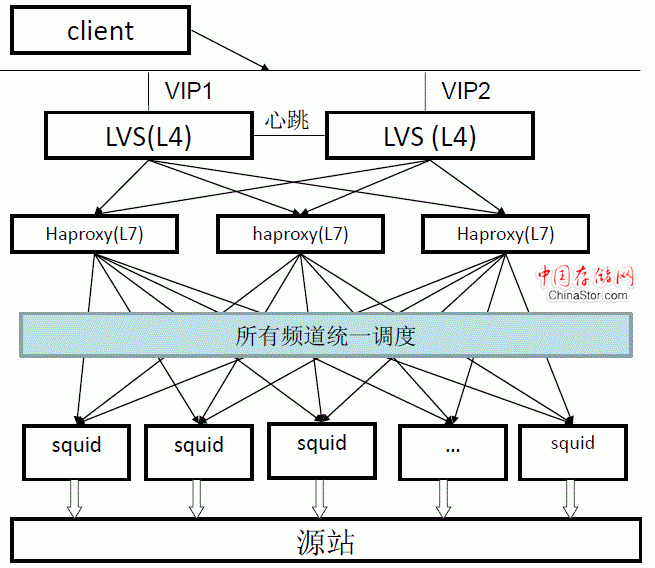 •逻辑结构:2 LVS + 30 Haproxy+ 60 Squid