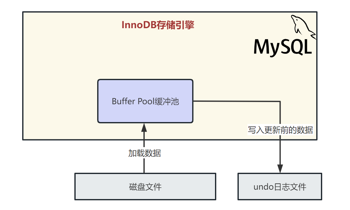 InnoDB存储引擎主要就是包含了一些buffer pool、redo log buffer等内存里的缓存数据,同时还包含了一些undo日志文件,redo日志文件等东西,同时mysql server自己还有binlog日志文件。