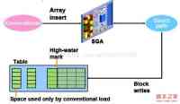 直接路径加载把数据直接插入到要修改的段的高水位(HWM)以上,从而生成了最少量的undo(只生成数据字典的undo,不生成块中数据的undo),且不通过高速缓存(SGA),因此它的性能比常规插入要好。