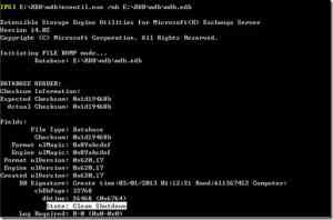 如果State显示为Clean shutdown,则数据库处于干净关闭状态;如果State显示为Dirty shutdown,则数据库还需要使用Eseutil /r进行软修复或使用eseutil /p进行硬修复。