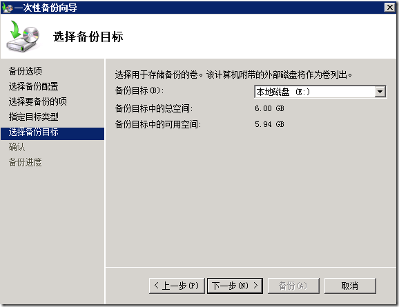 启动Windows Server Backup,我们使用Windows Server Backup备份数据库。