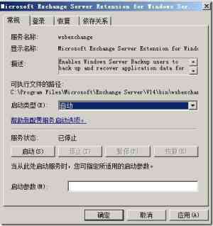 然后将Exchange服务器上的Microsoft Exchange Server Extension for Windows Server Backup服务类型设置为自动,启动此服务。