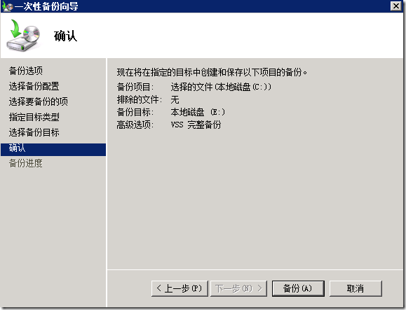 确认要备份的内容无误,点击“下一步”继续。