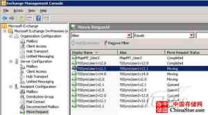 图21:在Move Request节点下可以监视邮箱迁移的过程,也可以通过Remove Move Request操作取消邮箱迁移