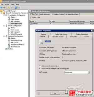 利用Exchange Server 2010的统一消息,不通过管理界面就可以实施很多管理控制功能。其中包括:语音邮件预览、个人自动助理、受保护语音邮件、统一消息网状配置,等等。需要注意的是,在Exchange Server 2010中,传真功能已经委托给第三方认证的传真解决方案。下图显示了EMC中统一消息管理的一些配置方法。