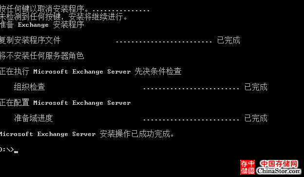 16. 上一步完成后进入到最后一步骤,兼容2003的命令执行,这部分命令完成后即可就可以安装EX2010了: