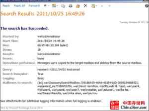 该命令将指定数据库中所有2011/01/10以前收到的邮件全部删除,并且将一份删除的日志写入到administrator的deletedmailslog文件夹下。对于接收日志信息邮件的邮箱必须使运行删除邮件命令的账号对其有完全控制权限,否则将无法在该邮箱中创建deletedmailslog文件夹。