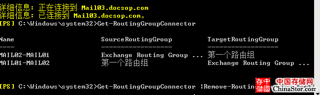 7. 接下来我们停止EX03-EX10之间的邮件互发,我们必须删除掉之间的路由器,我们通过执行以下的命令来删除路由连接器。在弹出的确认选择A删除全部即可完成路由组连接器:
