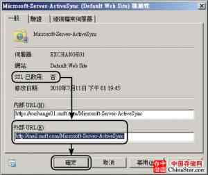 進入「SSL設定」頁面後,將「需要SSL」選項勾選取消,然後按下〔套用〕按鈕。接著開啟「Exchange管理主控台」,點選至「伺服器設定」→「用戶端存取」節點上,然後在〔Exchange Ac tiveSync〕活頁標籤內選取預設項目並且點選「內容」,即可如下頁圖示看到「SSL已啟用」欄位內出現「否」的設定值,這表示目前不啟用SSL(HTTPS)的連線加密機制。最後只要再修改「外部URL」內的位址,將其中「https」修改「http」即可。