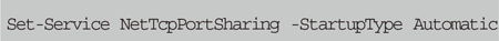 安裝好上述元件後將自動重開機,接著開啟Windows PowerShell,設定Net.Tcp Port Sharing服務成為自動啟動模式,並輸入以下的命令: