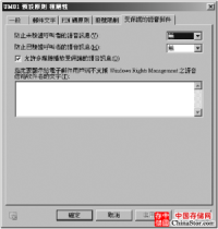 如下頁圖示,在〔受保護的語音郵件〕活頁標籤內則提供了新的管理機制,可決定是否讓使用者透過多媒體播放程式來播放已經由RMS加密的語音訊息,並且能夠輸入欲顯示給尚未支援RMS的用戶端使用者文字訊息,也就是沒有安裝IRM Client的收件者。完成以上各項設定後,按下〔確定〕按鈕。