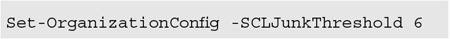 緊接著,透過以下的命令範例來自訂各種垃圾郵件SCL閾值與處理動作。此範例中,設定SCL=6進行隔離,SCL=7進行退信,SCL=8為直接進行刪除: