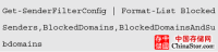 繼續執行如下的命令參數,查看目前所設定的三種寄件者的封鎖清單: