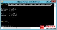內容篩選器也可以設定例外清單,只要下達命令範例「Set-ContentFilterConfig -BypassedRecipients landy@contoso.com,jerrys@contoso.com -BypassedSenders jovi@fabrikam.com,sandy@fabrikam.com -BypassedSenderDomains *.msn.com」來指定列外的收件者E-mail位址、寄件者E-mail位址,或是直接指定整個寄件者的E-mail網域即可,如圖16所示。想要查看目前內容篩選器的例外清單時,執行命令「Get-ContentFilterConfig | Format-List Bypassed*」即可。