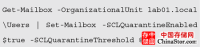 如果想要查看目前所使用的隔離信箱,執行命令「Get-ContentFilterConfig | Format-List QuarantineMailbox」即可。