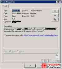 遛狗查原因,微软的官方解答为:“Exchange Server 2003 SP1对每个用户能够建立的会话数量做了限制,在缺省情况下,每个用户能建立的最大mapi session 数量为32。当然,您可以根据自己的需要来修改该值的大小。这些mapi session是指从Outlook 客户端到Exchange 服务器之间的建立的会话,而且没有被服务器释放的。导致连接没有断开的原因有多种,比如用户通过不稳定的网络如无线网络连接到Exchange服务器,这样可能会导致连接没有及时断开。”