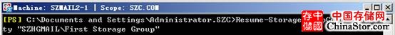 打开 Exchange 命令行管理程序工具,然后使用 Suspend-StorageGroupCopy cmdlet 命令暂停存储组的重播和日志复制。