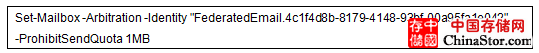 2) 为 FederatedEmail.4c1f4d8b-8179-4148-93bf-00a95fa1e042 邮箱重置默认配额。在Exchange Powershell中执行以下命令: