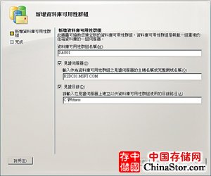 必須注意的是,如果所指定的見證伺服器不是一部Exchange Server 2010,那麼必須將預設的「Exchange Trusted Subsystem」萬用安全群組加入至這一部見證伺服器的本機Administrators群組中。這部分的設定後面將會說明。此外,也可以採用「Exchange命令主控台」介面,以如下的命令格式來新增資料庫可用性群組。接著,按下〔新增〕按鈕繼續。