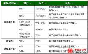 Lync服务器需要向客户端开放的端口范围如下所示: