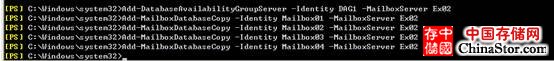 Add-DatabaseAvailabilityGroupServer -Identity DAG1 -MailboxServer Ex02 需要首先在群集中将Ex02退出,然后执行命令,不然会报错如下图红色部分