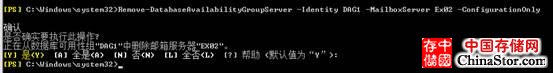 使用 Remove-DatabaseAvailabilityGroupServer cmdlet 从 DAG 中删除故障服务器的配置,如果成员故障服务器处于离线状态,则需要如下图中显示添加-ConfigurationOnly参数,如果没有离线,则可忽略。