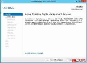 10、确定之后继续,选择加密模式2,下一步,选择AD RMS集中管理的密钥存储,下一步, 输入AD RMS群集密钥密码